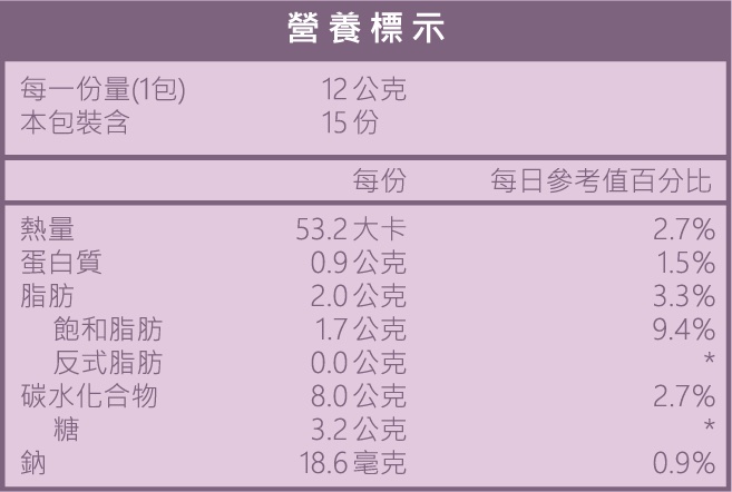 保存方式:請置於陰涼乾燥、避免陽光直射之處,開封後請儘早食用完畢避免受潮。