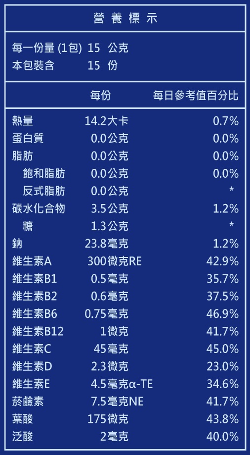 食用方式:每日一包,建議餐後30分鐘飲用。可直接飲用或是搭配水一起飲用,並依照建議用量食用,多食無益。
